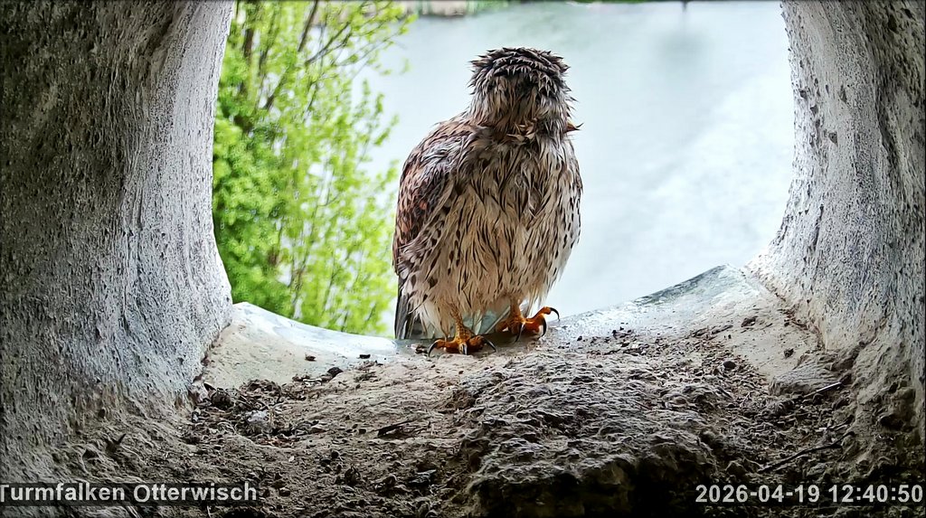 04.04.2026 - Nachdem der Einflug wieder frei ist, nehmen die Falken ihr Nest in Beschlag -> Video